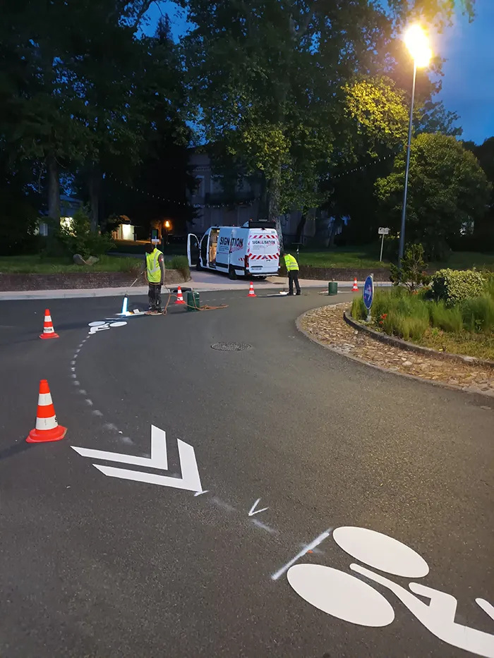 les marquages assurent le respect du Code de la route et des normes en vigueur, notamment en matière de sécurité routière, d’accessibilité (PMR) ou de signalisation temporaire (chantier).